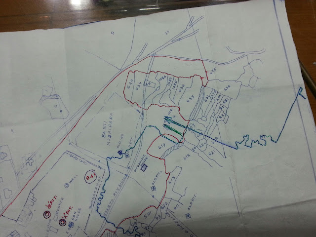 Picture 4 - Position of plot 641 shown on Map by ECL. One can see the bustee and existing buidlings shown here. Two parallel arrows and below portion can be noted. NGNB patta lands are in the top portion of map beyond the area demarcated by ECL for mines and official purposes. ECL officials admitted that they don't have any objection to NGNB on this land.
